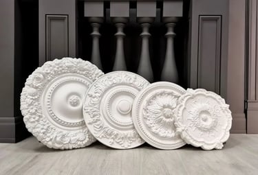 Ajoutez une touche d'élégance à vos plafonds avec nos rosaces en staff ou plâtre, idéales pour sublimer vos luminaires et apporter du cachet à vos intérieurs.